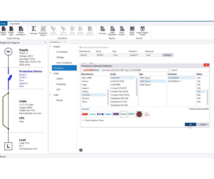 Instantly visualise and calculate electrical systems as you design with the easy to use graphical interface. And make diagnosing and solving errors in projects easy by using index-linked calculation result summaries to find affected areas in the design.